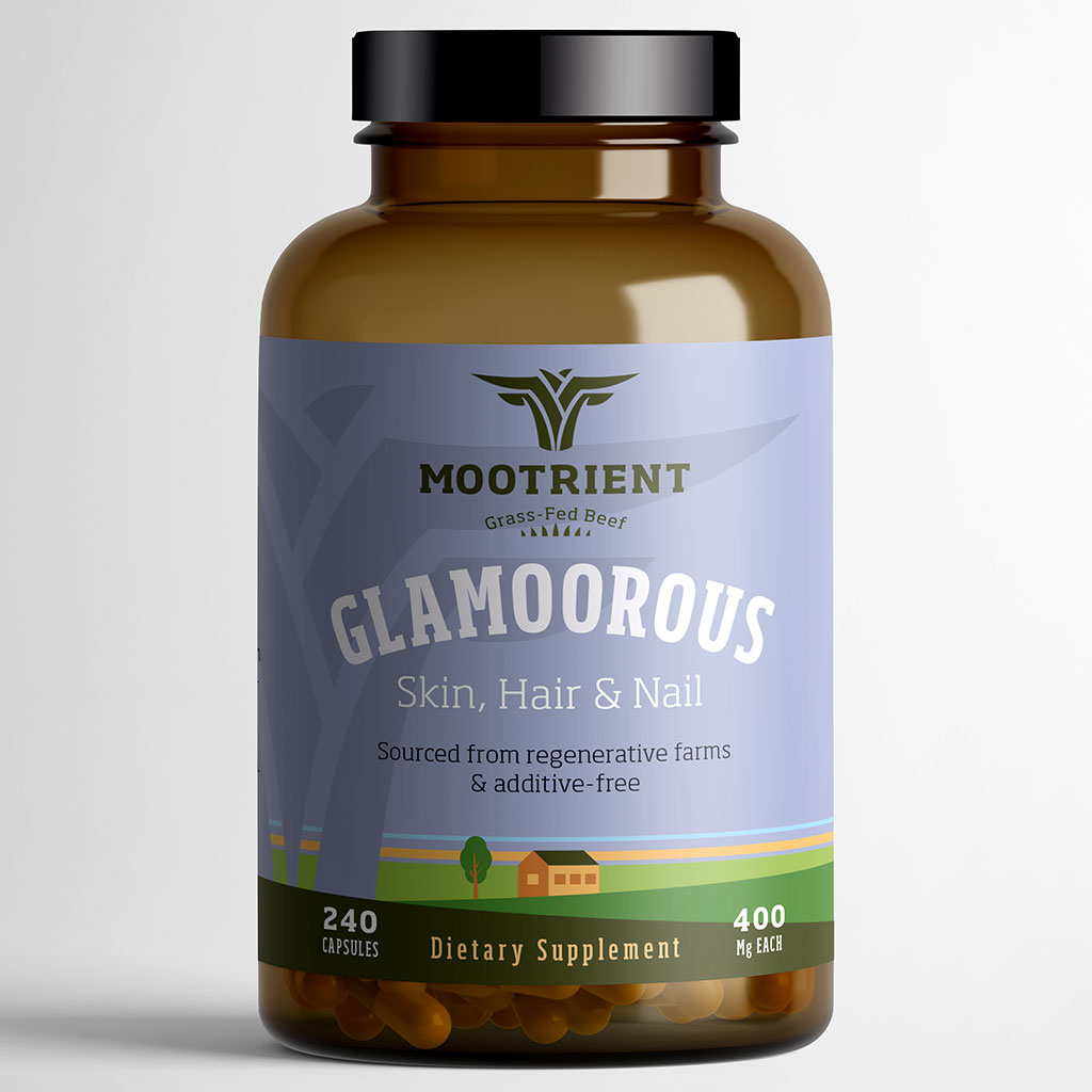 Grass-fed beef collagen combined with vitamins and peptides to make your skin, hair and nails healthier.